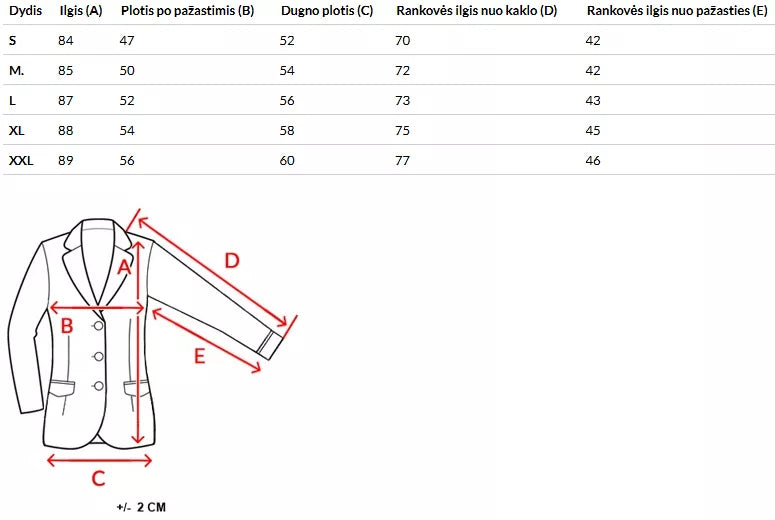 Dydžių lentelę rasite nuotraukų galerijoje.