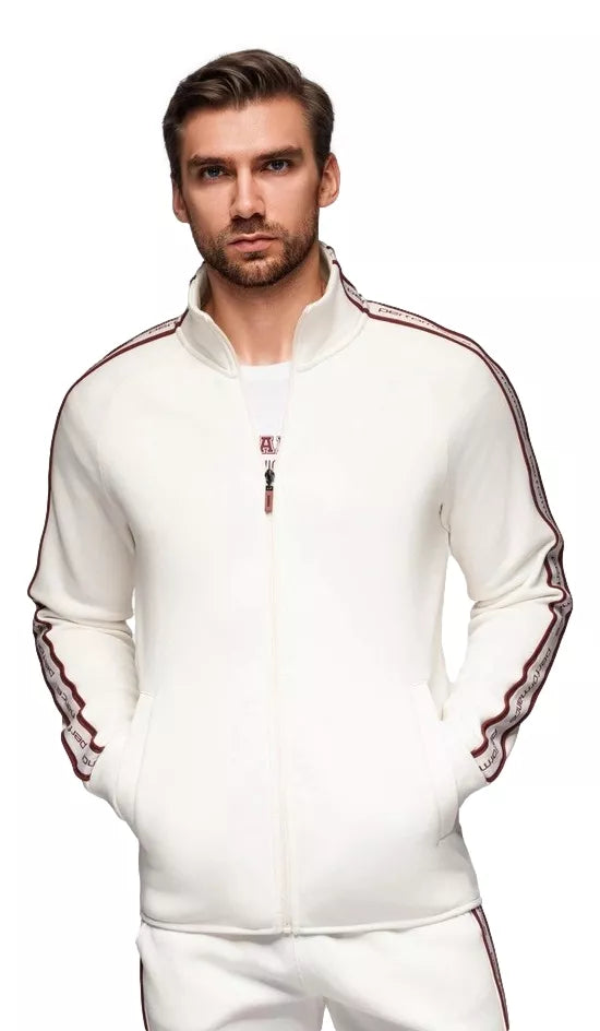 Modernus, patogus ir stilingas – šis vyriškas džemperis puikiai tinka aktyviam laisvalaikiui, sportui ar kasdieniam dėvėjimui. Klasikinio silueto modelis su aukšta apykakle ir užtrauktuku per visą ilgį suteikia praktiškumo ir šiuolaikišką įvaizdį. Rankovėmis ir pečiais eina raudonos dekoratyvinės juostos su užrašu, kurios išryškina sportišką charakterį ir suteikia stilingą kontrastą tamsiai mėlynai spalvai. Džemperis turi dvi patogias šonines kišenes, idealiai tinkančias rankoms arba smulkiems daiktams laikyti. Pagamintas iš malonaus, šiek tiek tamprio audinio, todėl užtikrina patogumą ir nevaržo judesių.