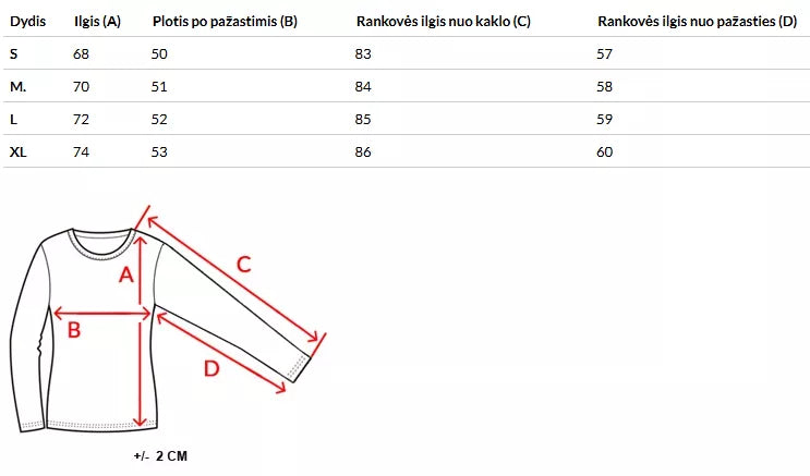 Dydžių lentelę rasite nuotraukų galerijoje.