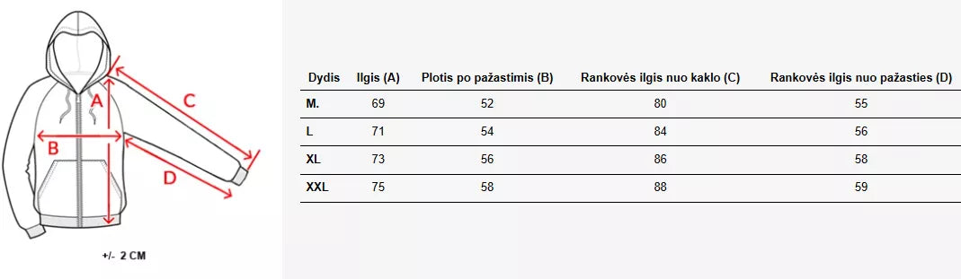 Dydžių lentelę rasite nuotraukų galerijoje.