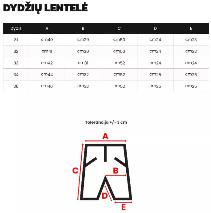 Dydžių lentelę rasite nuotraukų galerijoje.