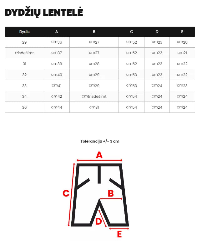 Dydžių lentelė rasite nuotraukų galerijoje.