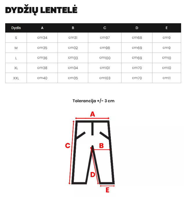 Dydžių lentelę rasite nuotraukų galerijoje.