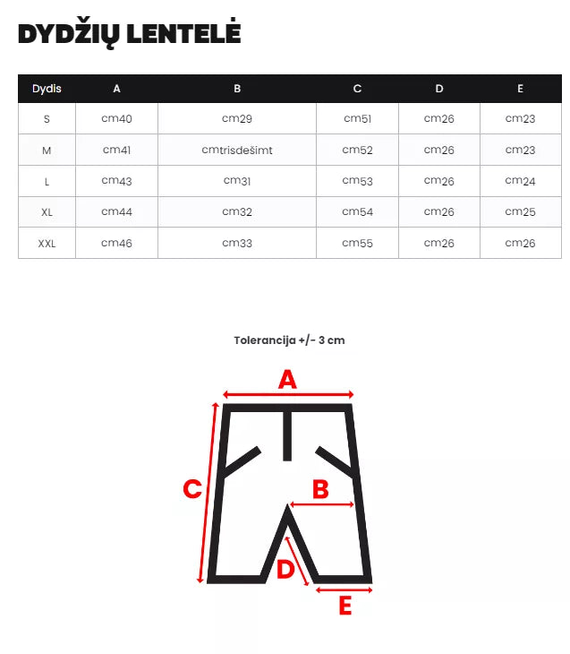 Dydžių lentelę rasite nuotraukų galerijoje.