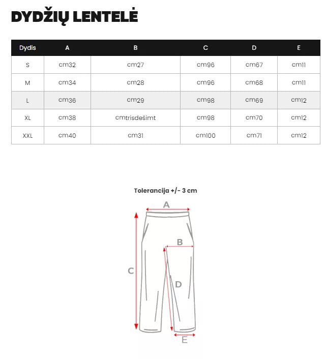 Dydžių lentelę rasite nuotraukų galerijoje.