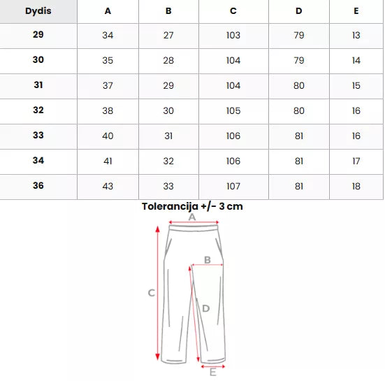 Modelis 182 cm, 87 kg dėvi 31 dydį.