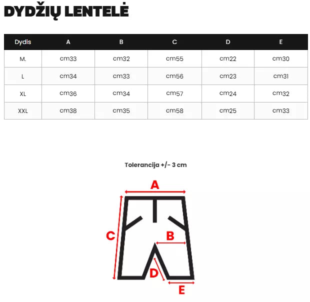 Dydžių lentelę rasite nuotraukų galerijoje.