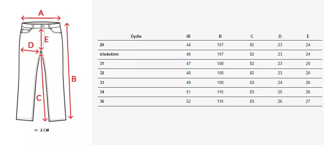Dydžių lentelę rasite nuotraukų galerijoje.