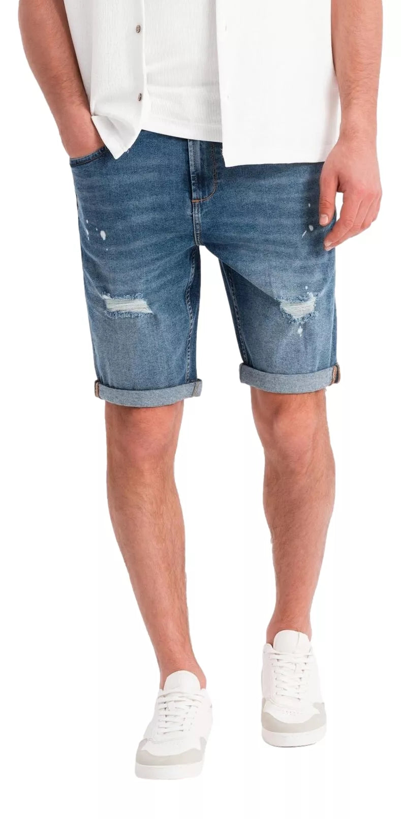 Šie vyriški džinsiniai šortai – tai vasaros laisvalaikio esmė su charakterio prisilietimu. Trinties efektas ir dekoratyvinės dėmės suteikia jiems unikalų miesto stilių. Patogus kirpimas ir tampri medvilnė puikiai tinka kasdieniam dėvėjimui. Tai pasiūlymas vyrams, kurie vertina modernų komfortą.