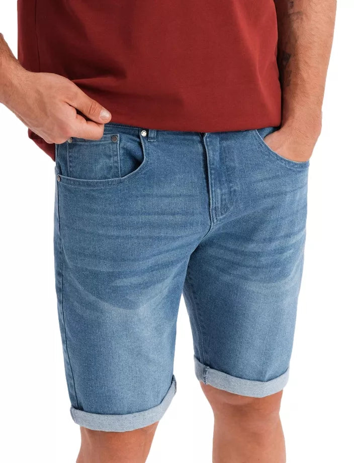 Rinkitės vasarišką stilių ir patogumą. Džinsiniai šortai su nušviesinto audinio efektu yra būtinas garderobo atributas šiltomis dienomis. Dėl tampraus audinio jie prisitaiko prie figūros ir suteikia visišką judėjimo laisvę. Papildomi akcentai, tokie kaip užriesta klešnė ar dekoratyvinės kniedės, suteikia visumai charakterio. Yra kišenės gale ir priekyje, papildoma maža kišenėlė laikrodžiui. Tamprus audinys patogumui ir prigludimui