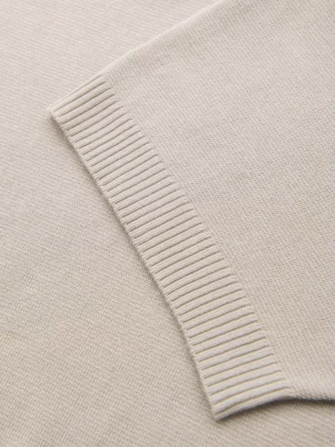Stilinga alternatyva klasikiniams polo marškinėliams, šis modelis žavi rafinuotu, siauru kirpimu ir minkštu, maloniu nešiojimo audiniu. Sagų nebuvimas pabrėžia modernų minimalizmą. Universalūs ir elegantiški – idealiai tinka su chino kelnėmis, šortais ar lengvo audinio kelnėmis. Prigludęs, siauras kirpimas, megztas audinys su klasikiniu pynimu ir kompaktiška struktūra, atvira apykaklė be sagų, rankovės aptrauktos elastiniais juostomis. Subtilus prekės ženklo užrašas marškinėlių apačioje.