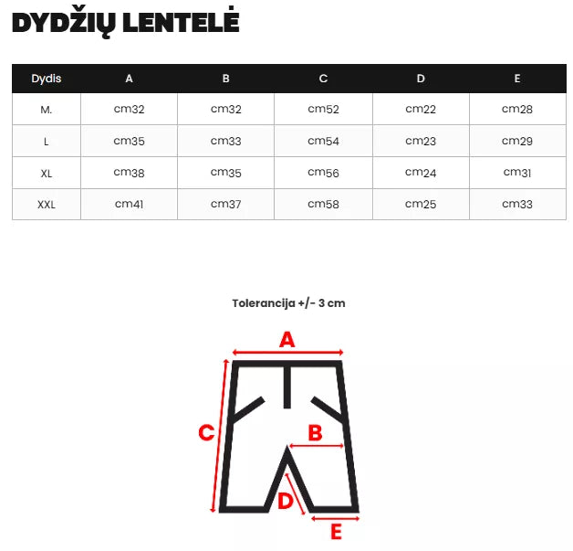 Dydžių lentelę rasite nuotraukų galerijoje.