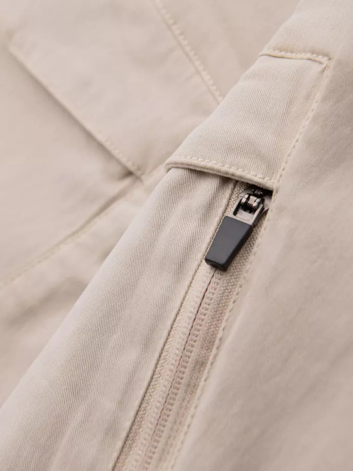 Stilingi vyriški krovininio stiliaus šortai, pasiūti iš medvilninio audinio su pridėtu elastanu. Laisvas kirpimas su plačiomis klešnėmis suteikia judėjimo laisvę, o praktiškos krovininės kišenės pabrėžia jų utilitarinį pobūdį. Juosmuo su raišteliu ir virvele, yra kišenės priekyje ir klasikinės kišenės gale.