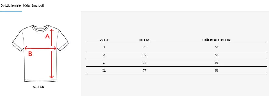 Dydžių lentelę rasite nuotraukų galerijoje.