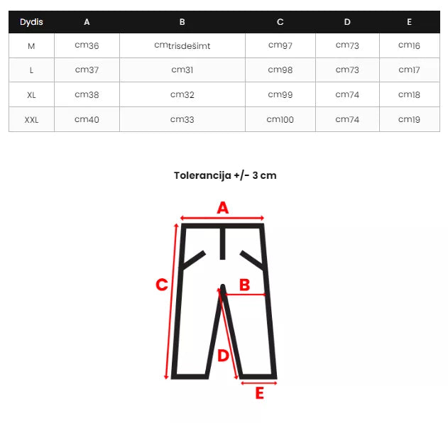 Dydžių lentelę rasite nuotraukų galerijoje.