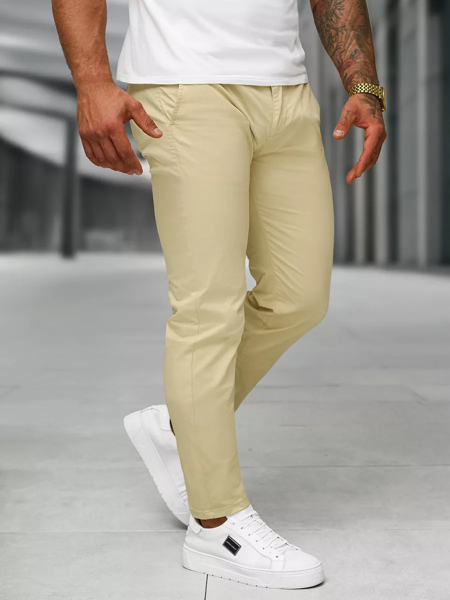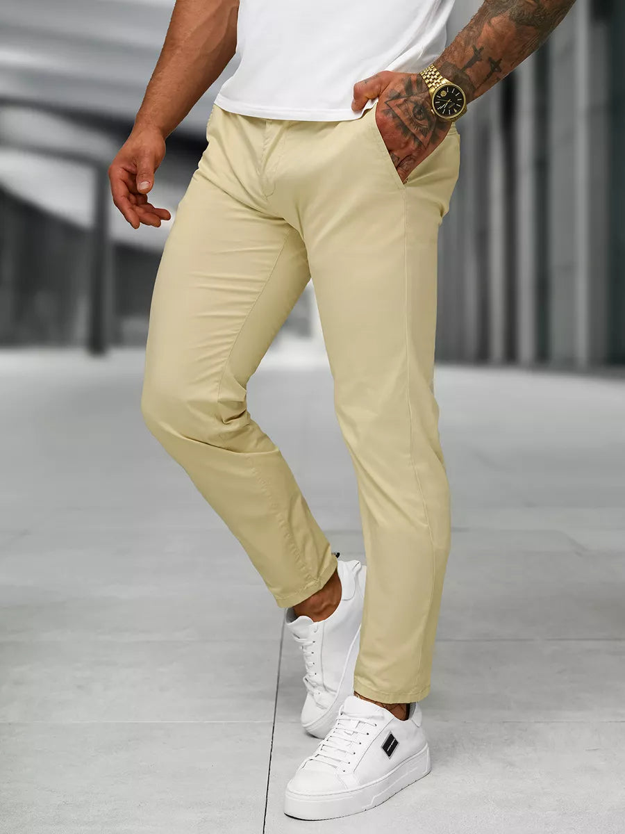 Stilingos vyriškos chino kelnės pagamintos iš aukštos kokybės medžiagos, šios kelnės užtikrina komfortą ir universalumą. Puikiai tinka tiek laisvalaikiui, tiek elegantiškesniam įvaizdžiui, derinant su sportiniais bateliais ar klasiniais aksesuarais.