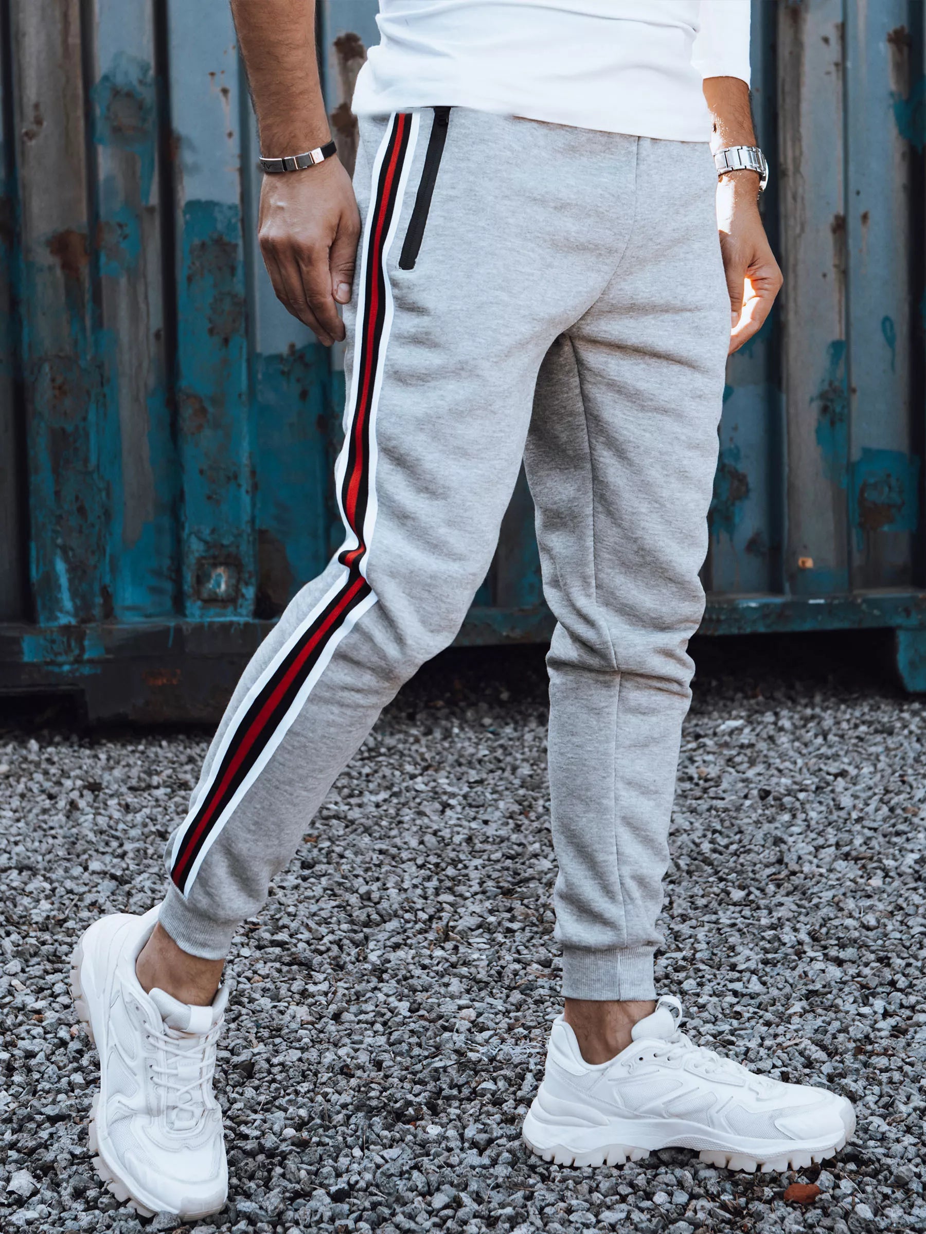 Vyriškos sportinės kelnės su dekoratyvinėmis juostelėmis suteikia ne tik patogumo, bet ir šiuolaikiškumo. Pagaminti iš minkštos, malonios liesti medžiagos, suteikia visišką judėjimo laisvę. Dvi priekinės kišenės leis susidėti būtiniausius daiktus. Virvelės ant kojų ir juosmens, papildomai reguliuojamos virvele, užtikrina puikų prigludimą. Puikiai tinka treniruotėms, pasivaikščiojimams ar tingiai popietei.
