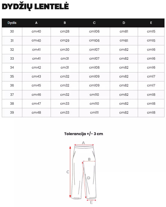 Dydžių lentelę rasite nuotraukų galerijoje.