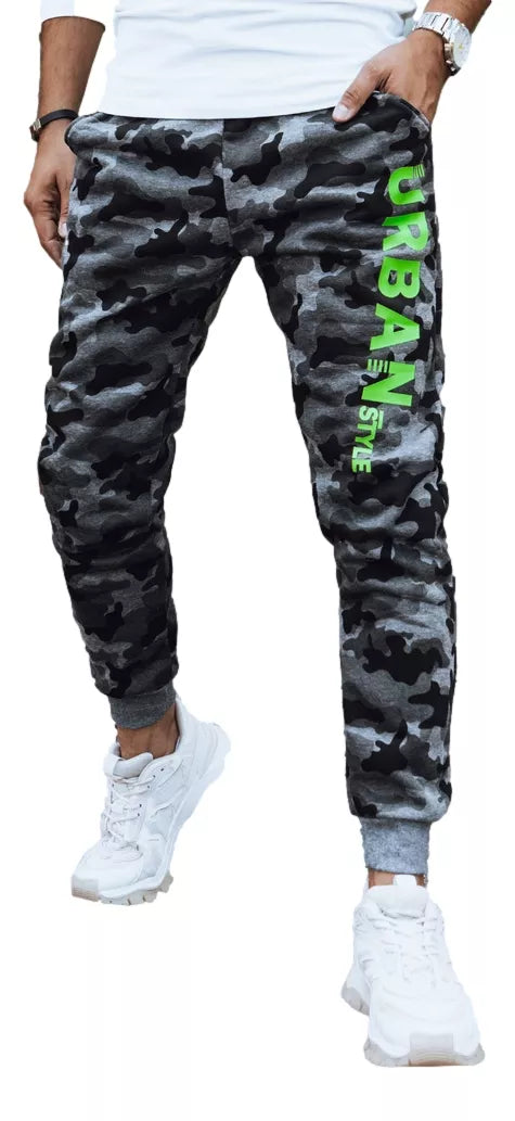 Stilingos sportinės kelnės kiekvienam šiuolaikiniam vyrui – šios kamufliažinio rašto ir „Urban Style“ rašto sportinės kelnės šį sezoną privalomos. Pagaminti iš minkštos, malonios liesti medžiagos, suteikia komfortą ir judėjimo laisvę. Elastingi rankogaliai ant kojų ir juosmens, su papildomu reguliuojamu raišteliu užtikrina puikų prigludimą. Dvi praktiškos kišenės leidžia susidėti būtiniausius daiktus. Tobulas pasirinkimas kiekvienai dienai!